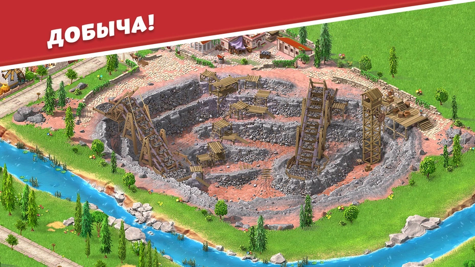 - 🪨 Добыча полезных ископаемых — камень, железо, золото, мрамор. Осваивай шахты и карьеры, чтобы обеспечить стройки материалами.